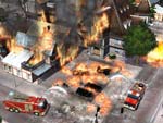 Monte Cristo have clearly gone to a lot of effort to produce natural and realistic fire dynamics. The system was apparently developed in conjunction with actual fire fighters, and the game uses a very sophisticated fire model to faithfully recreate the behaviour of fire. Once an object has ignited, the spread and intensity of the flames are determined by many factors - wind can change the direction of a fire, increasing its intensity and spread, while landscape can increase or hamper a fire. Smoke is also an enemy. Moving much quicker than the fire, it often is the first indication of a much greater threat. Noxious fumes can suppress the oxygen levels, incapacitating people without breathing apparatus. In certain circumstances, fire can be almost totally extinguished within a room which has no smoke outlet, yet a substantial intake of air into the room will re-ignite the fire, literally exploding it outwards - "back draft." Since most of us aren't fire fighters we'll never know how accurate all this is, but it certainly plays well and offers some chaotic moments.